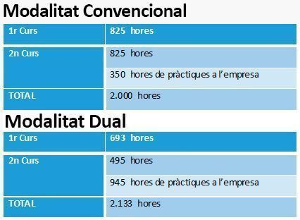 El número de horas lectivas del ciclo en las dos modalidades son las siguientes: