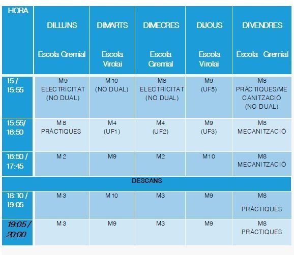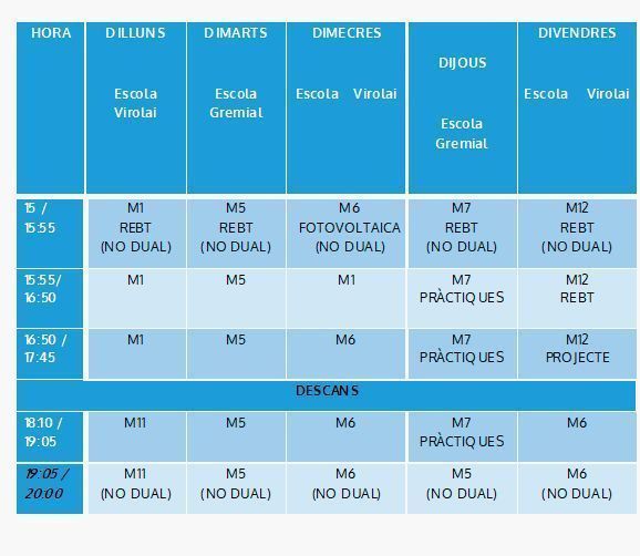 Respecto a la distribución horaria el ciclo se impartirá en horario por la tarde, se a decir las clases empezarán a las 15h, si se hace la Modalidad Convencional, o a las 16h si se hace en la Modalidad Dual (excepto los jueves que también en esta modalidad empezarán alas 15h).